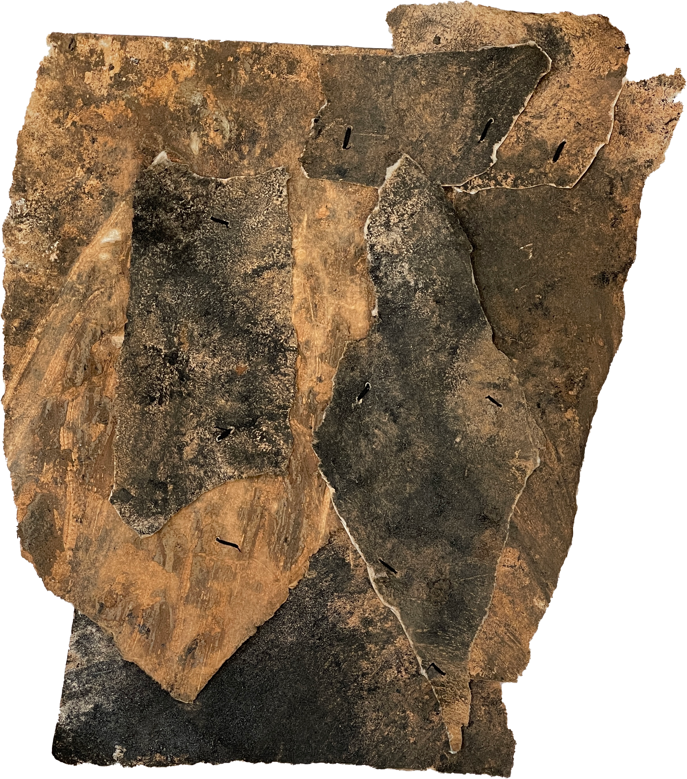 Sordidum Chartam (dirty paper), 2021, clay rich dirt, charcoal, thread and paper.