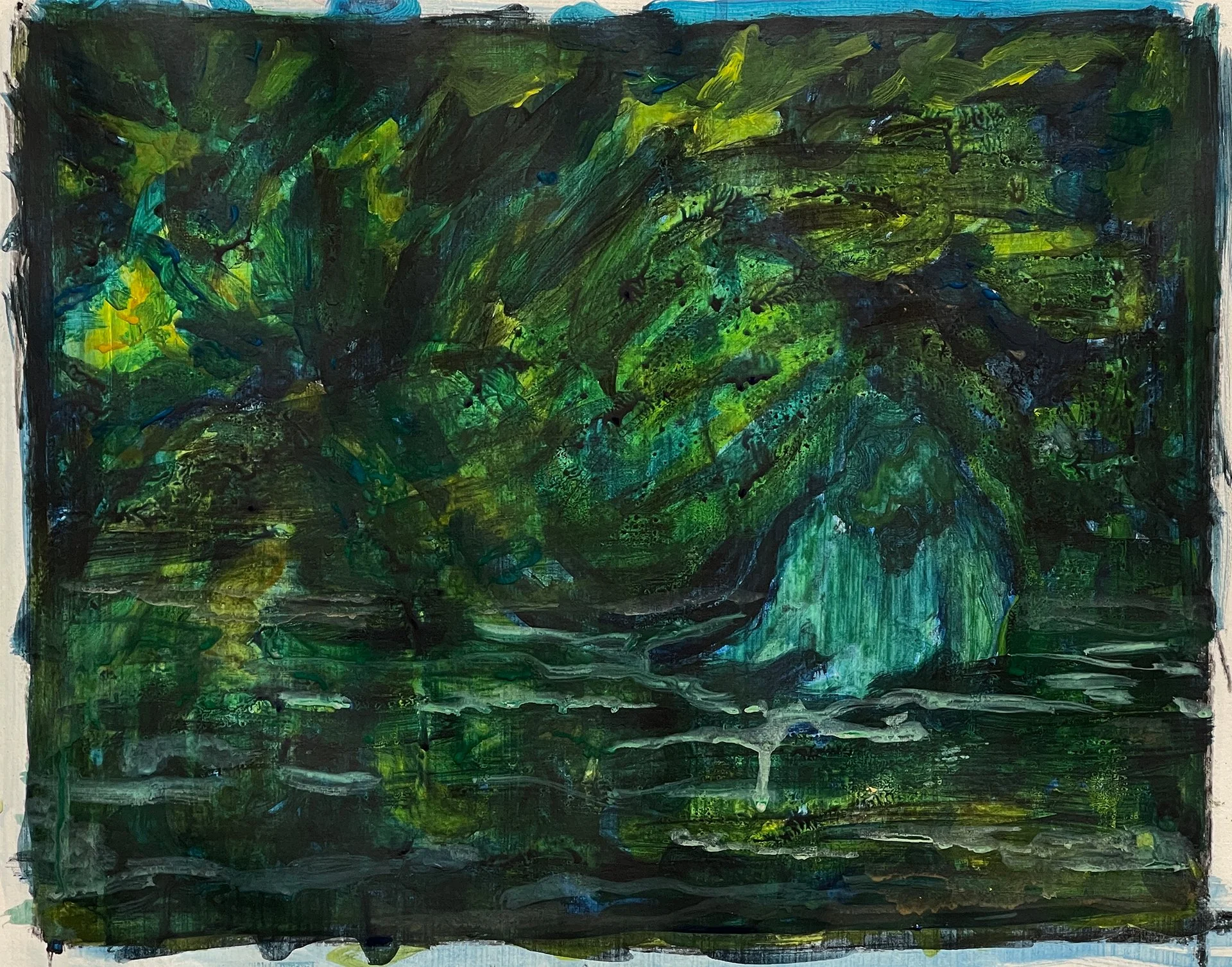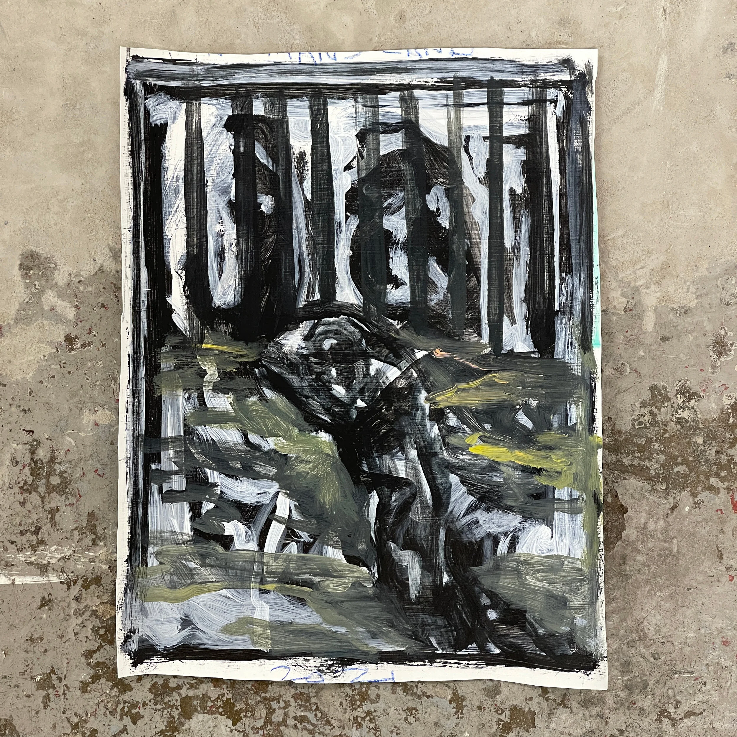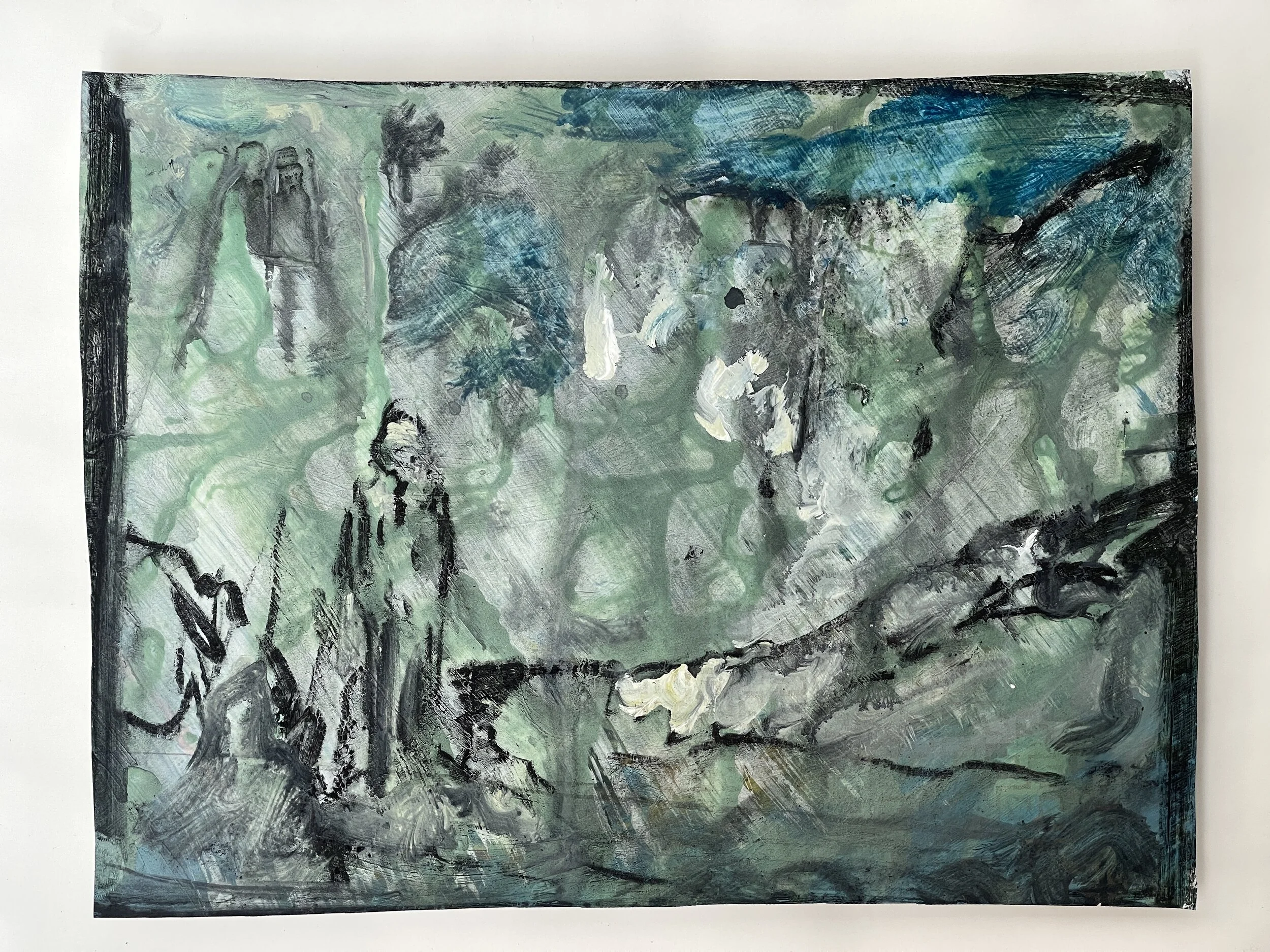 Trudging through swampy energy, 2021. acrylic and charcoal on paper. (part of a private collection, UK)