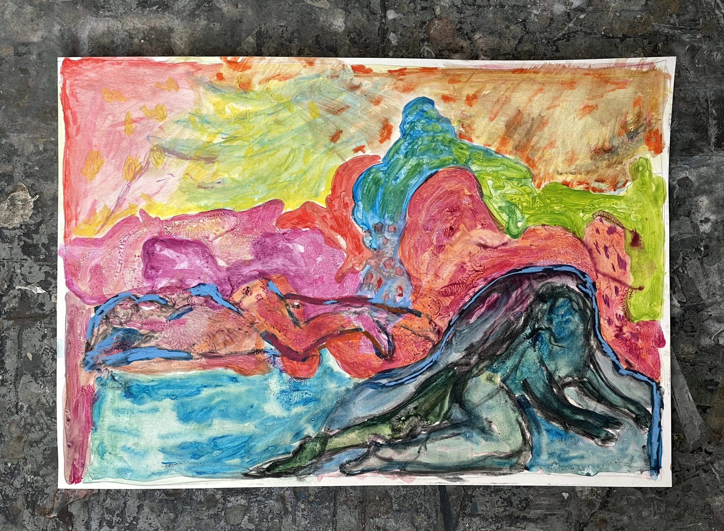 dossers, 2021, 29.7cm x 42cm, water soluble crayons, acrylic and charcoal on paper.