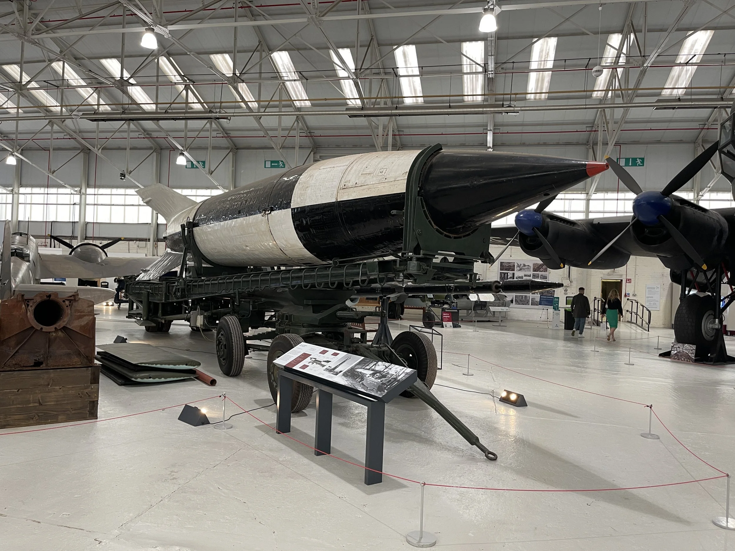 The first ever supersonic ballistic missile, I saw this at The RAF Museum in Cosford. V-2 rocket.